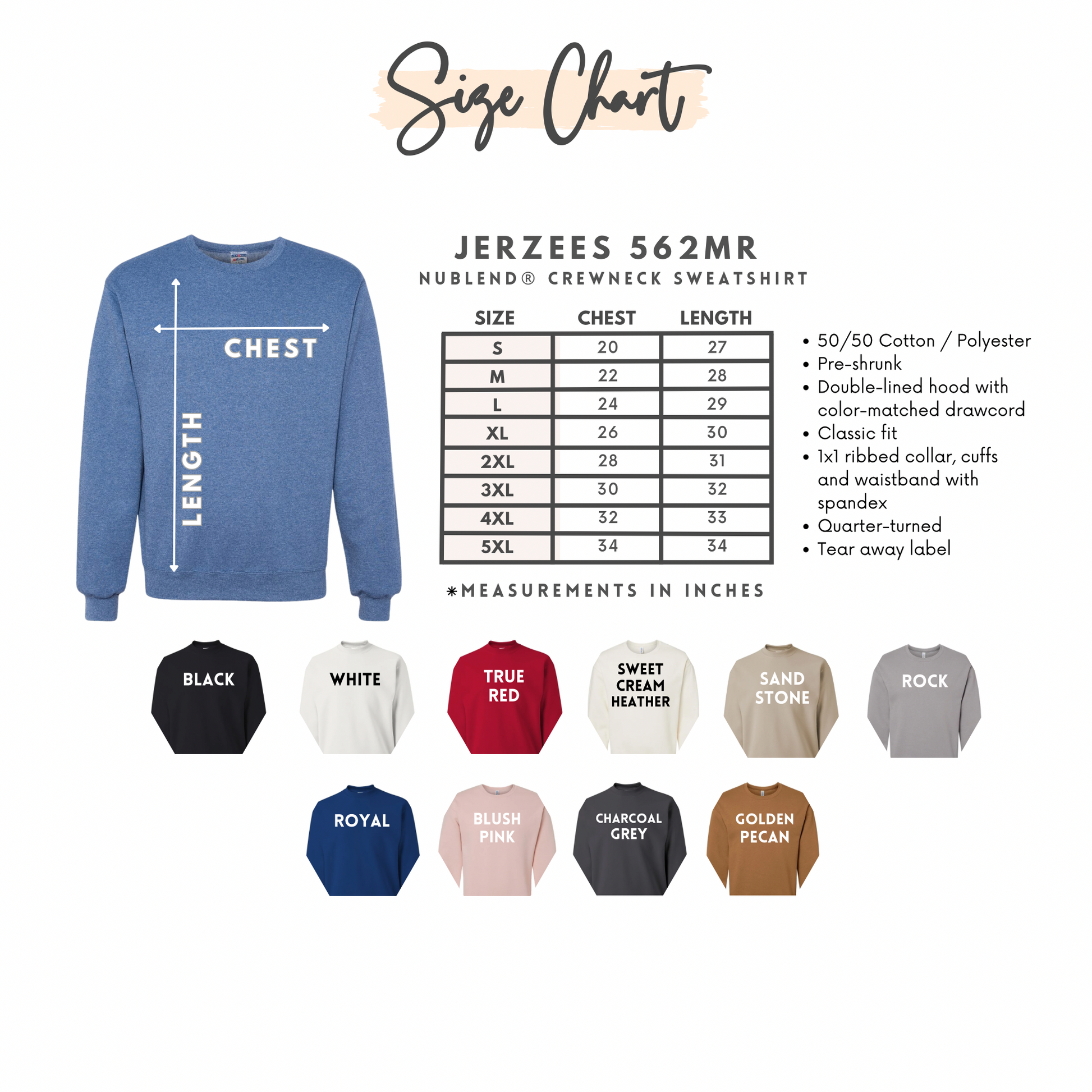 - 50% cotton / 50% polyester (soft & durable)